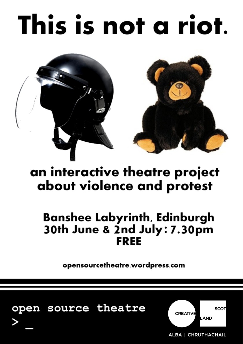Following a year of performances at venues and festivals around the UK, from The Yard Hackney to Buzzcut Glasgow, “This is not a riot” is appearing for two special free performances in Edinburgh in preparation for touring to the CrisisArt Festival in Tuscany.